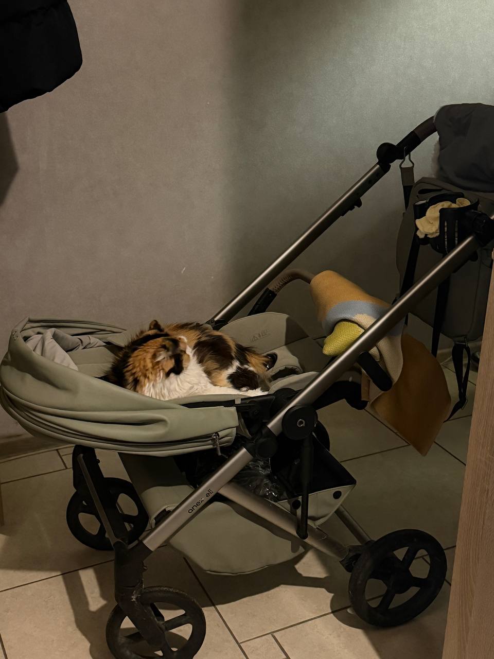 кошка оккупировала мою коляску. хорошо, что я уже сегодня погулял 😁